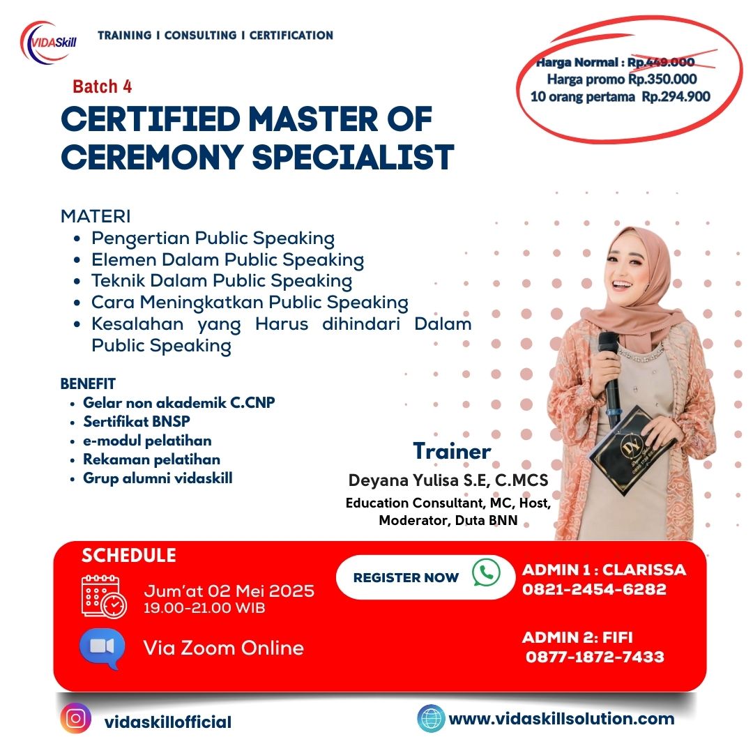 Mengikuti kelas Certified Master of Ceremony (MC) Specialist dapat memberikan banyak keuntungan, baik dari segi
