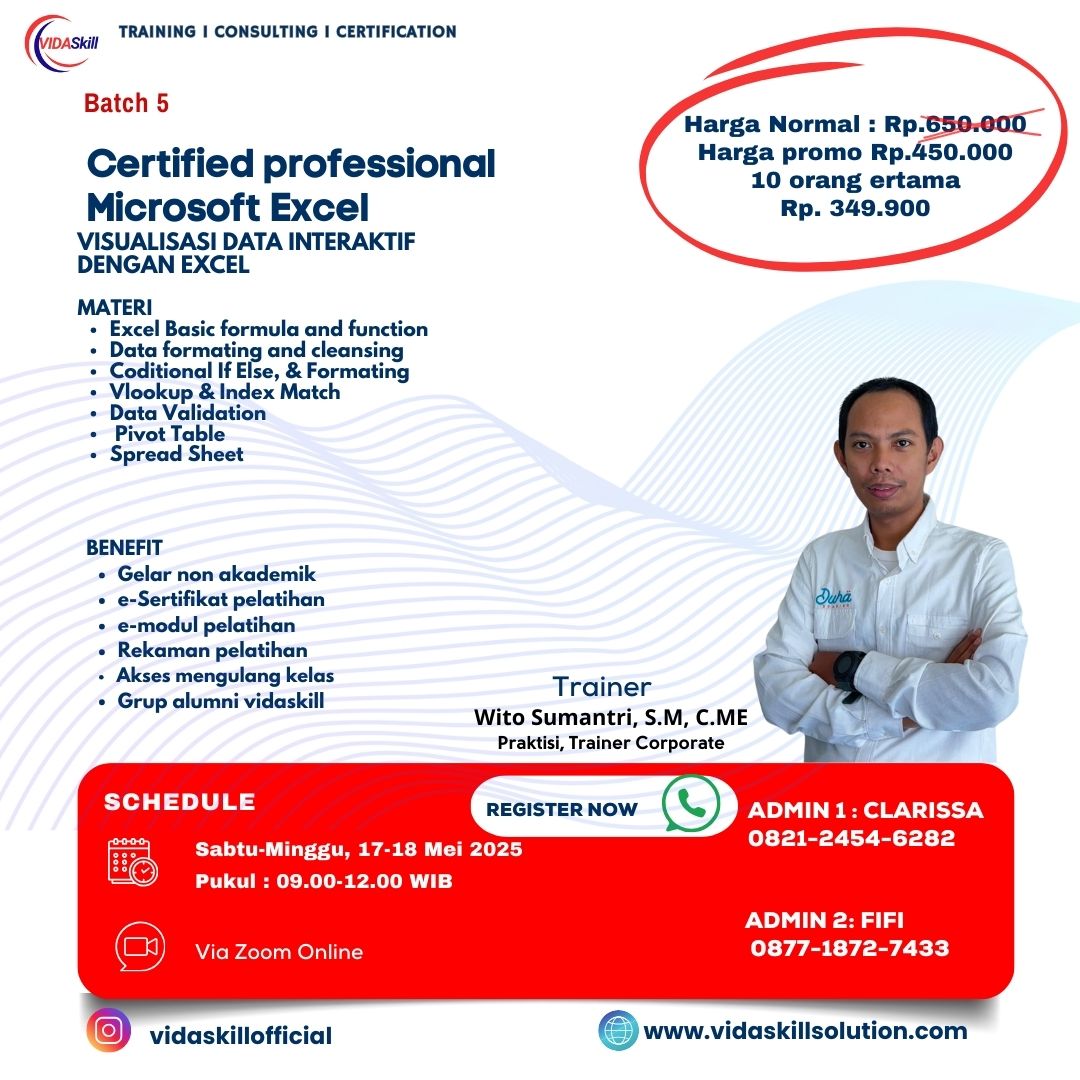 Skill Excel-mu Masih Dasar? Saatnya Naik Level! Yuk gabung pelatihan kece Certified Professional Microsoft Excel