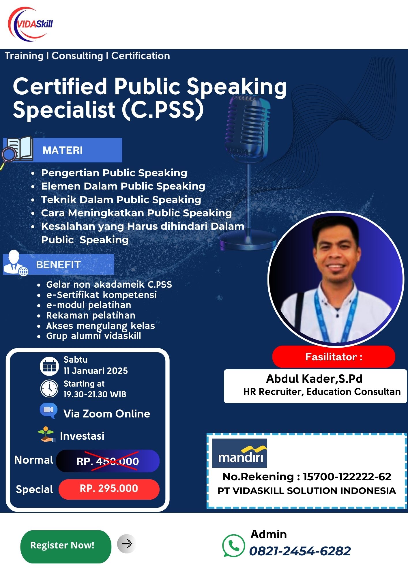 Certified Public Speaking Specialist ( C.PSS ) Desember 2024