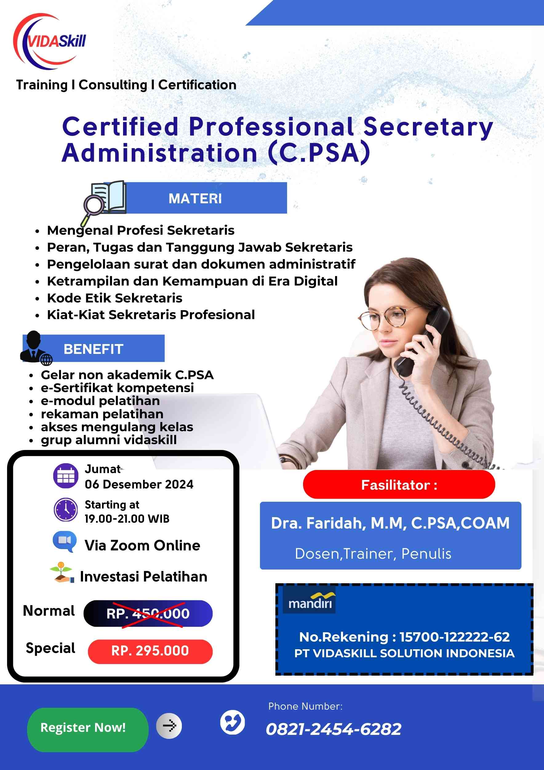 Certifed Professional Secretary Administration (C.PSA) Desember 2024