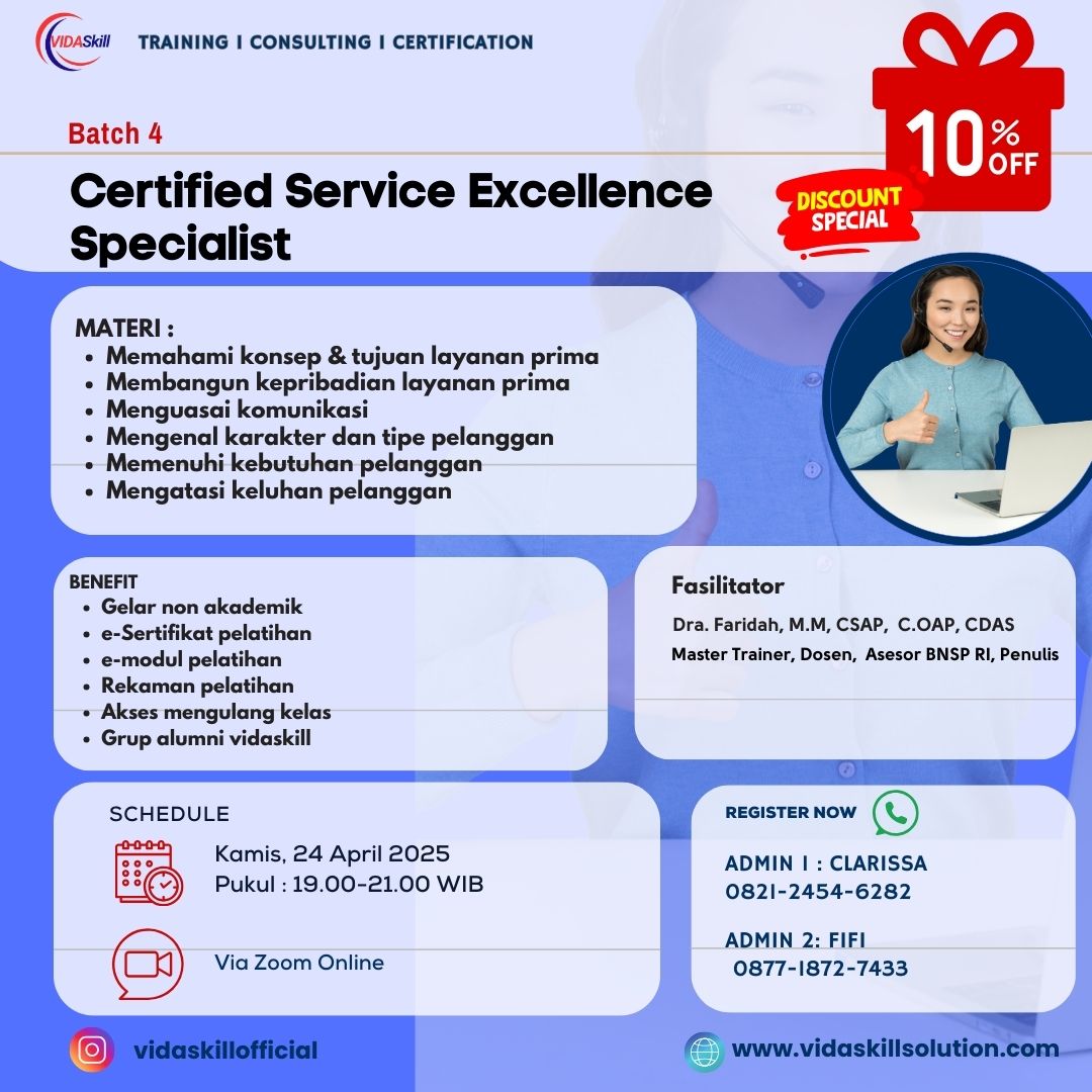 Pelatihan Service Excellence Specialist memberikan banyak manfaat, terutama untuk individu yang bekerja di bidang layanan
