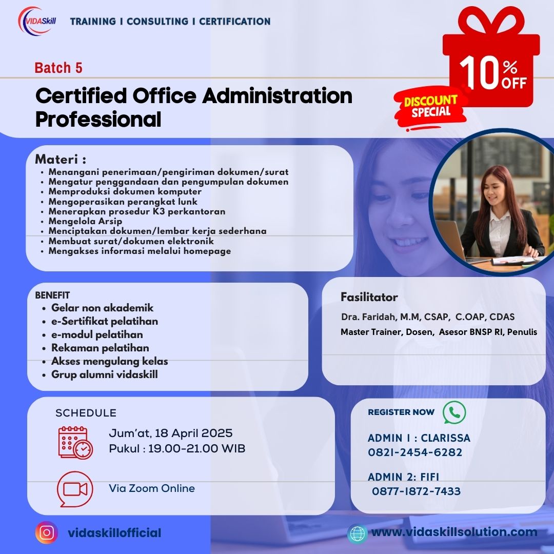 Mengikuti pelatihan Office Administration (Administrasi Perkantoran) punya banyak manfaat, terutama buat kamu yang ingin atau